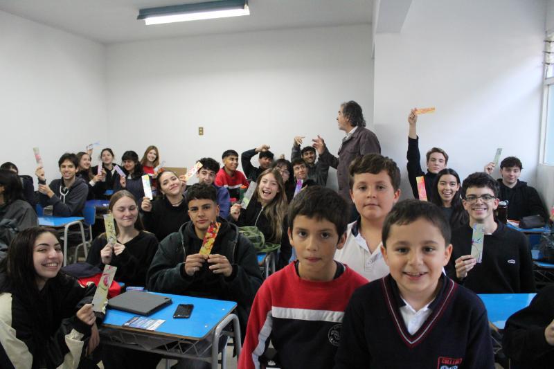 Cada mes de abril el colegio celebra el día internacional del libro. El miércoles 24, los/as estudiantes de 3º Básico junto a sus profesores/as visitaron desde 7º Básico hasta 4º Medios para leer una fábula y varias adivinanzas a los compañeros/as más grandes. Posteriormente, estudiantes de 4º Medios fueron a las salas de 1º a 6º Básico a leer cuentos e invitar a los más pequeños, quienes disfrutaron con la actividad. Se entregaron marcadores de libros con citas elegidas por los estudiantes provenientes de los textos del Plan Lector. Sin embargo, estos mensajes no fueron lo único especial este año, los marcadores fueron creados utilizándose la técnica artística del “Marmolado de Papel”, realizada en el taller de Reciclaje de Papel y Encuadernación. Toda la comunidad alabó la belleza y dedicación de estos marcapáginas.