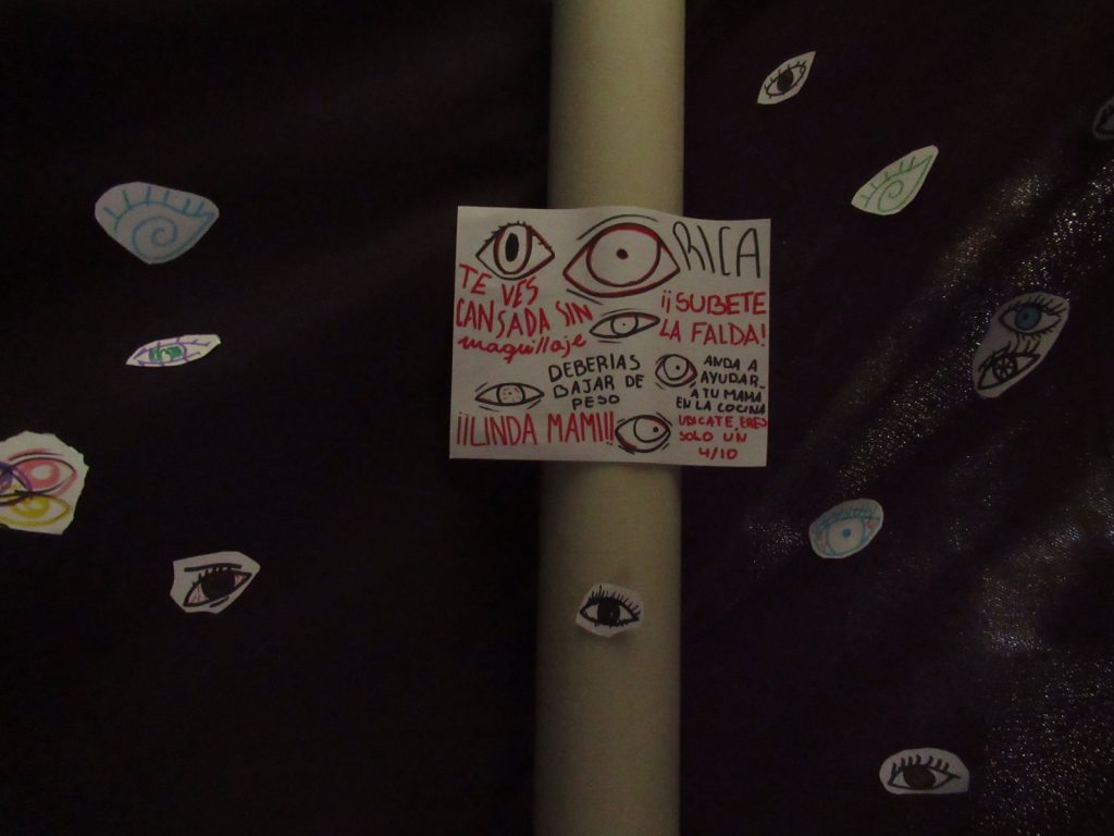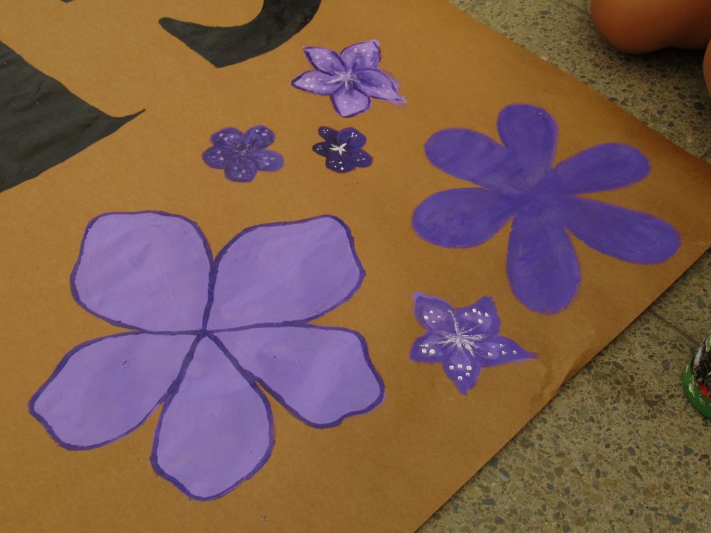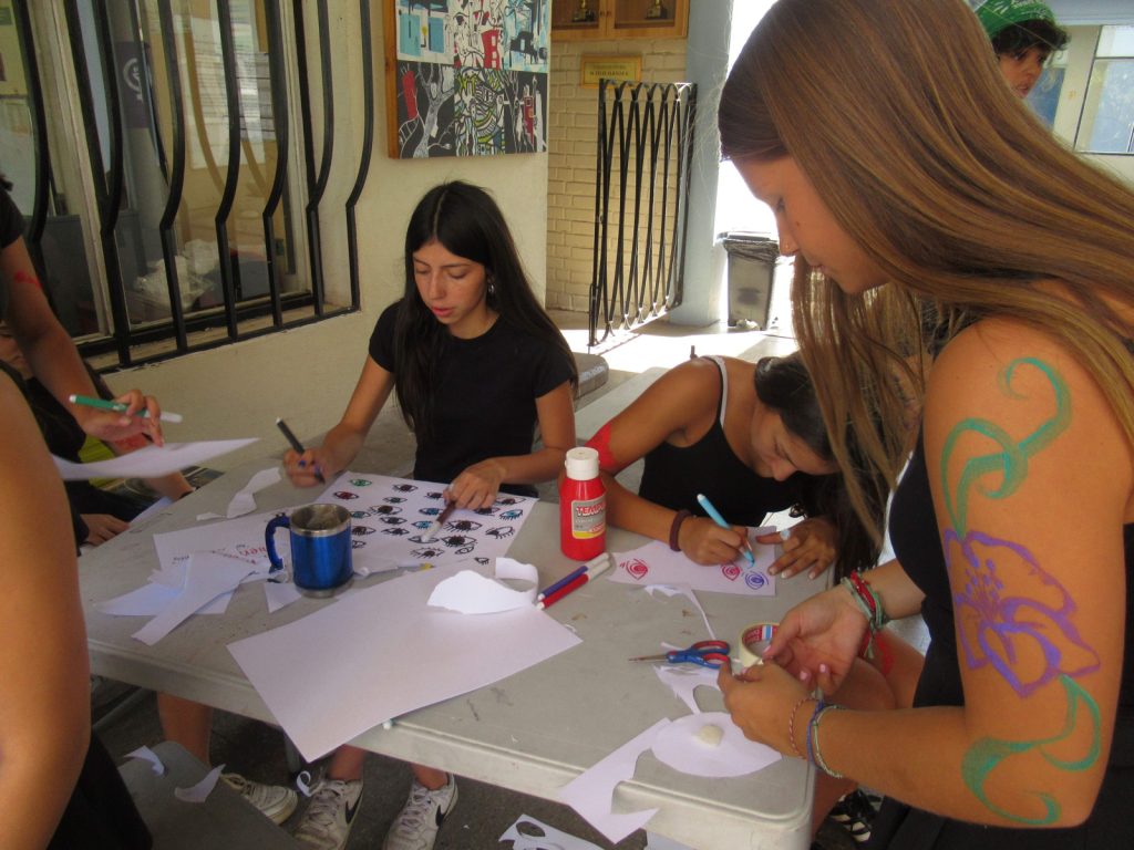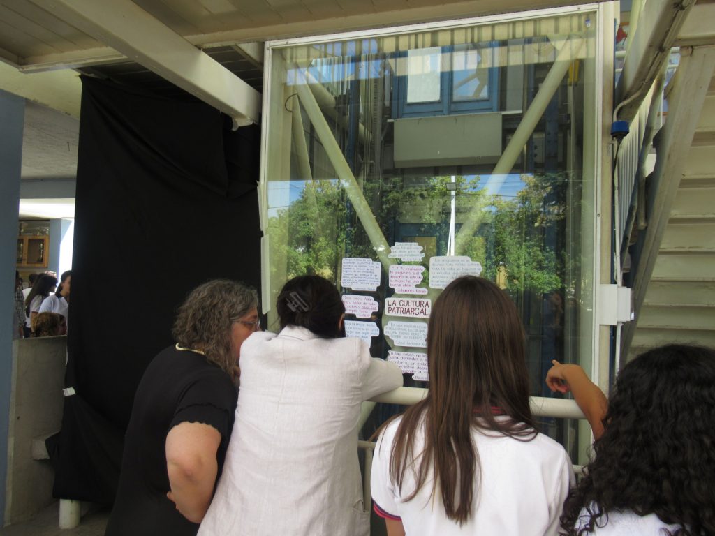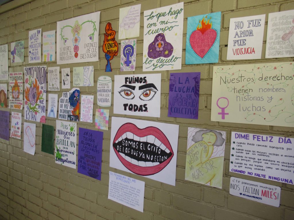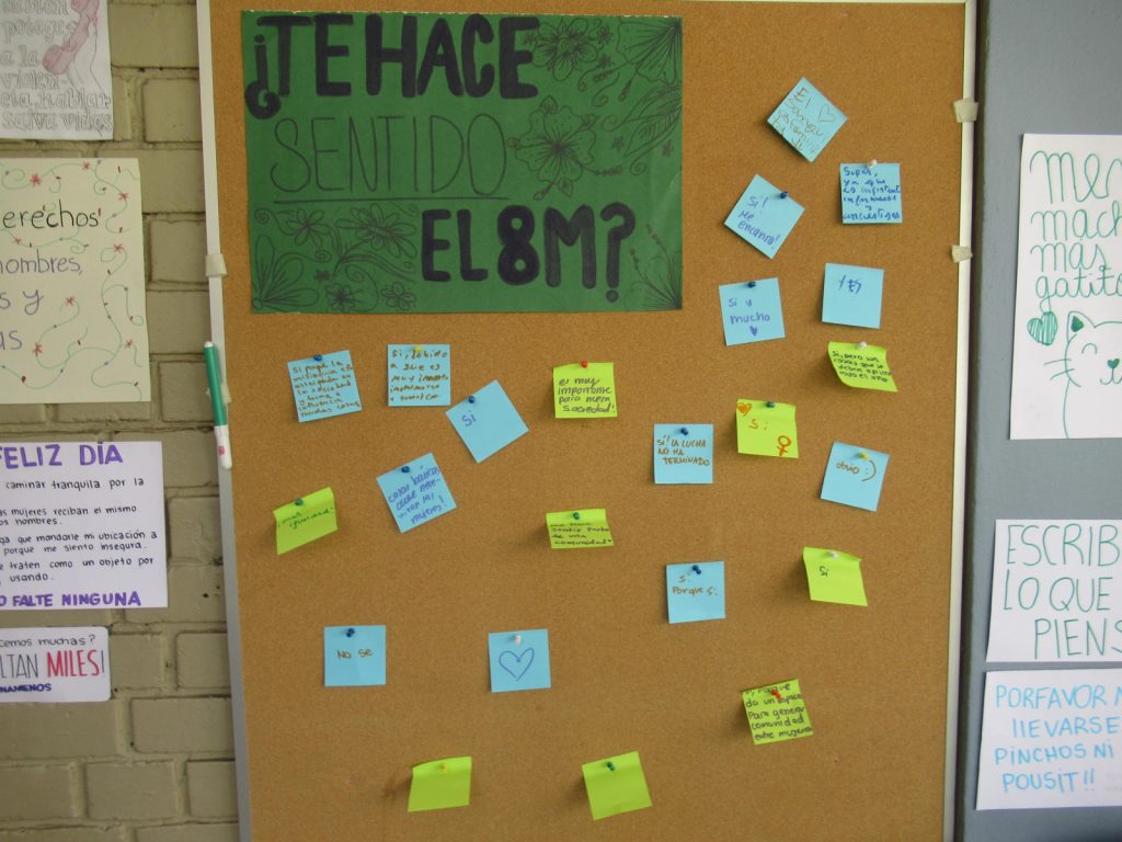 Lo que las niñas del COFEM organizan para la conmemoración del Día de la Mujer es, primero una acción de arte e informativa respecto de algunas cifras o conceptos que demuestran la vivencia, las brechas y los deseos de cambio por parte de las mujeres respecto de la cultura machista.