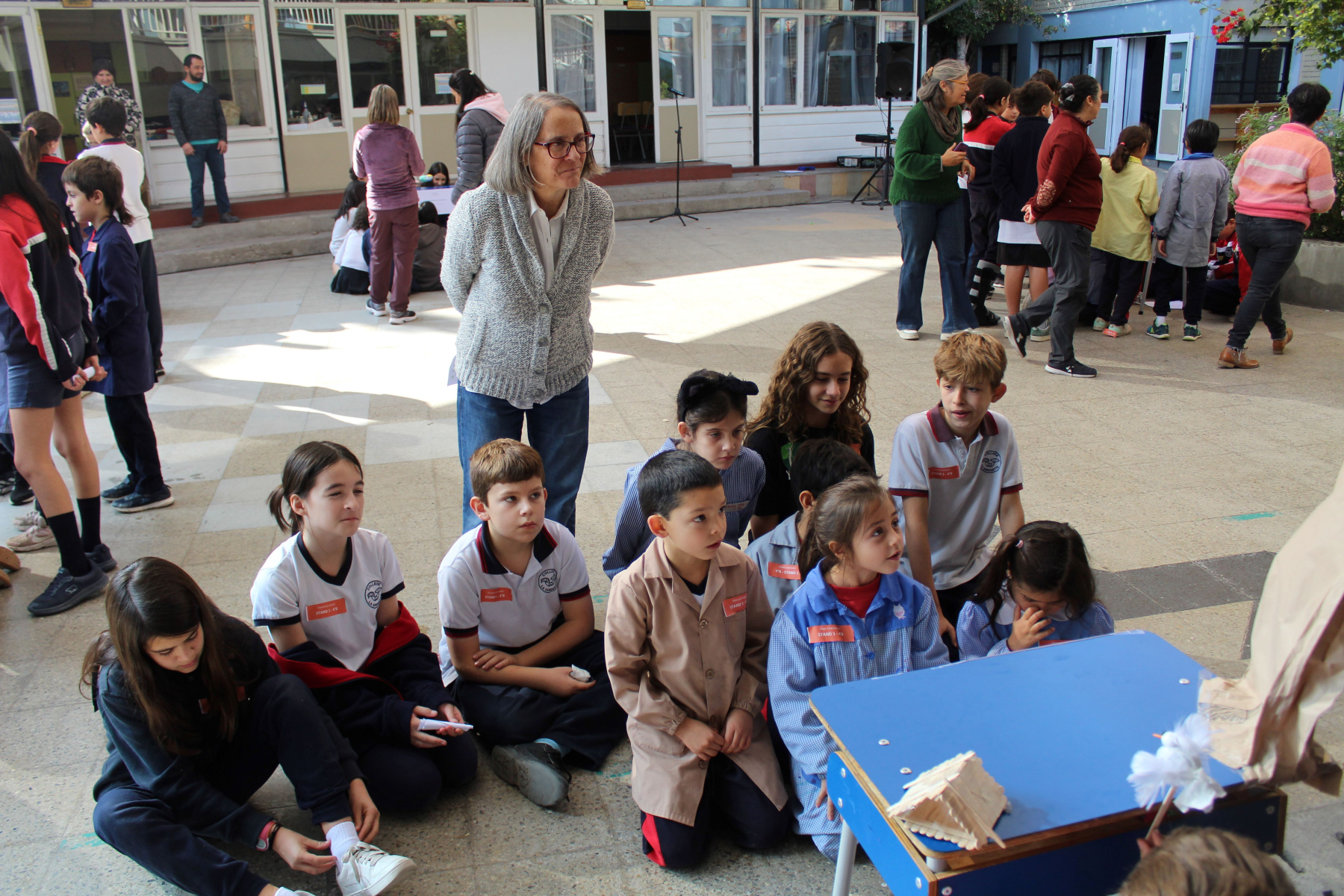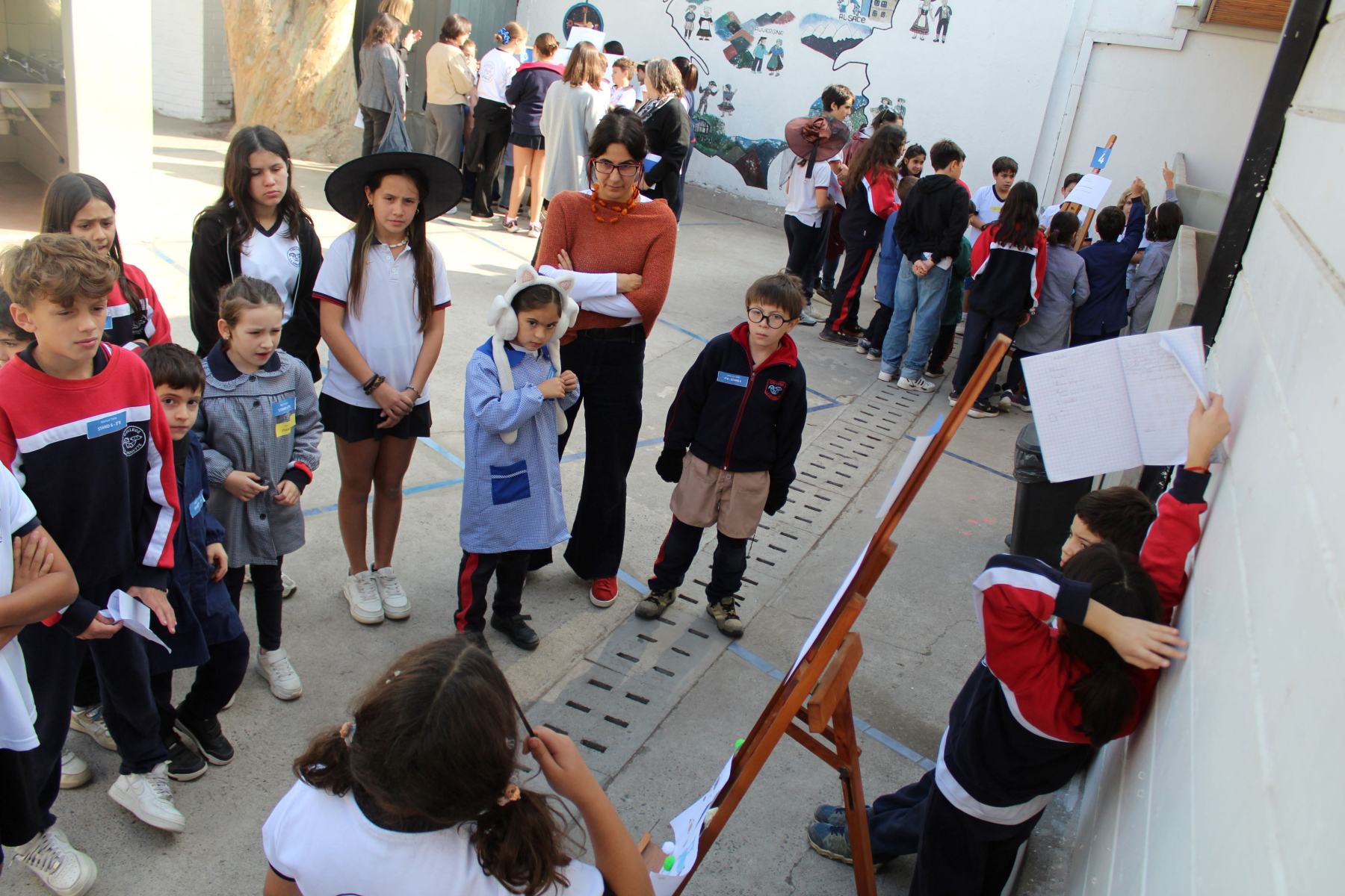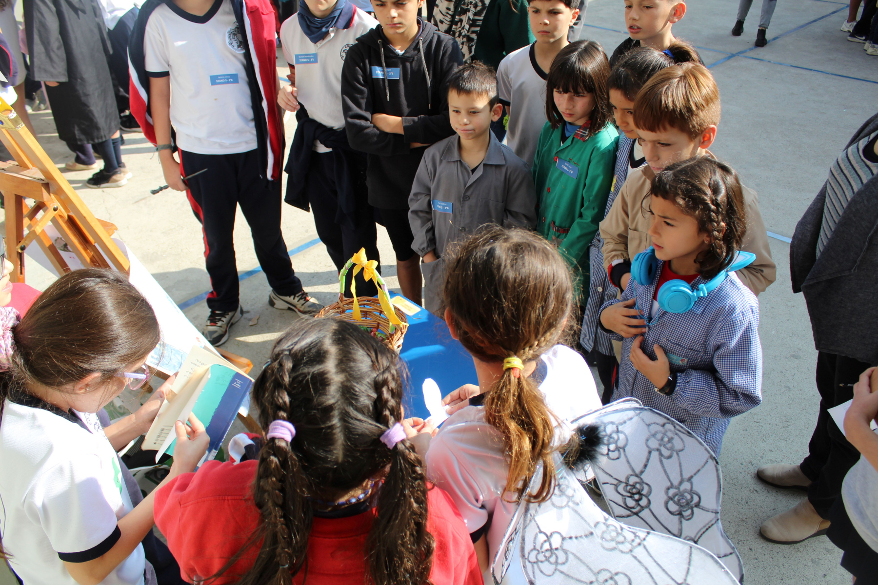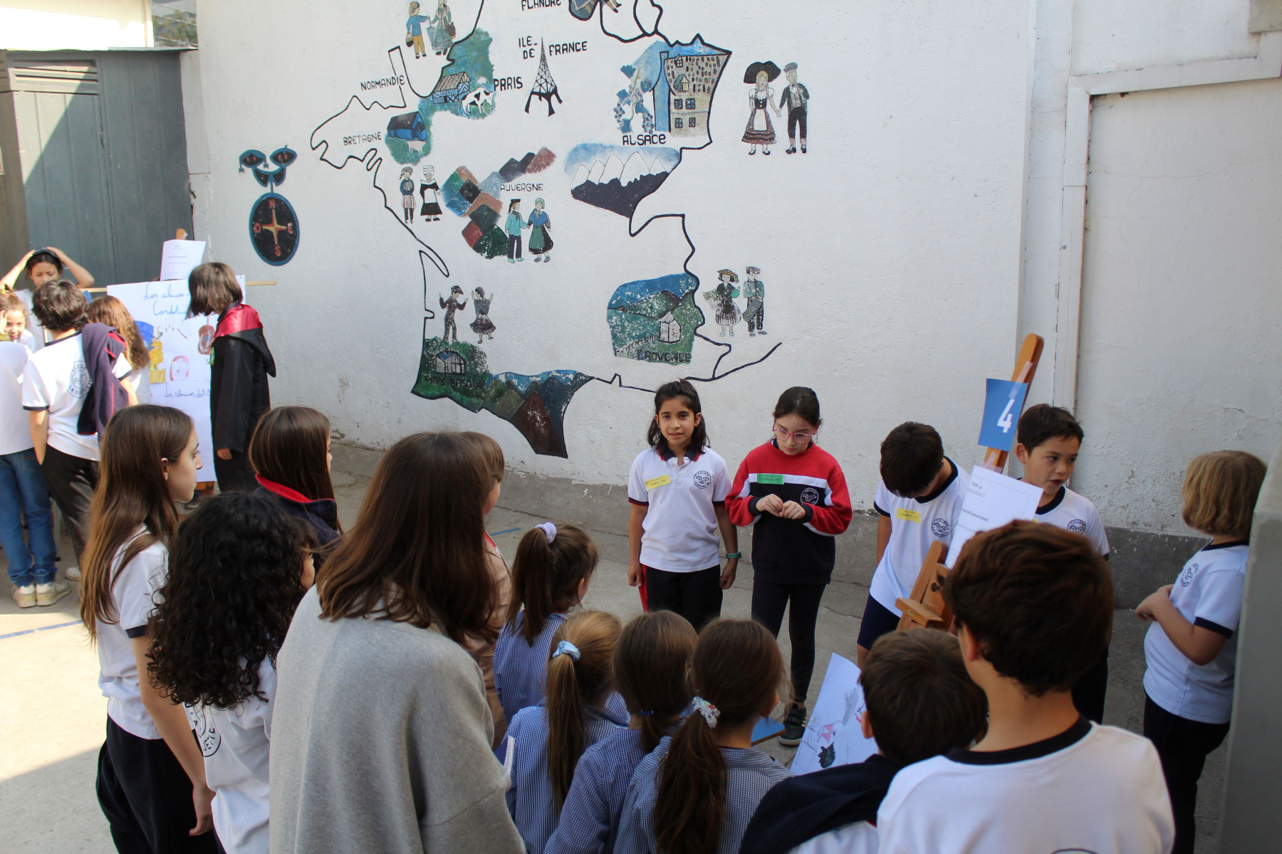 El jueves 24 de abril continuó la celebración en el patio de la campana con nuestra Directora, Mme. Bárbara Albagly y Mme. Mónica Sadá quienes narraron el cuento “La jirafa no puede bailar” de Giles Andreas a los cursos de 1° a 6° Básico los cuales escucharon atentamente. La narración fue acompañada por los estudiantes de 4º Medio: Dominga Erazo, Renata Mahnke, Josefa Díaz, Simona Vera, Amelia Corvalán, Elisa Montes, Carmen Santa-Cruz, Manuel Oyarzún, Ágata Jordan y Arturo Rivera quienes representaron teatralmente el cuento.