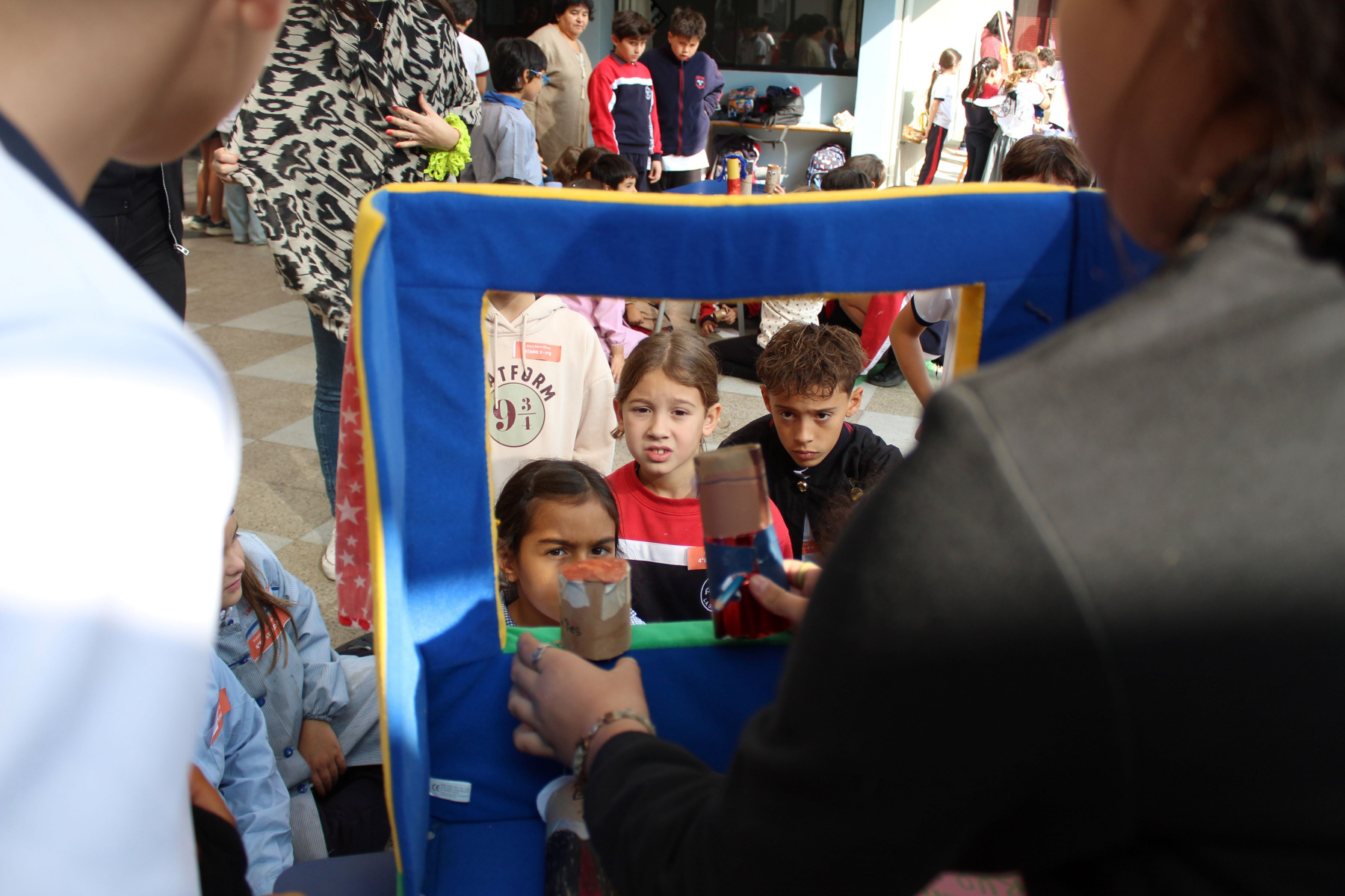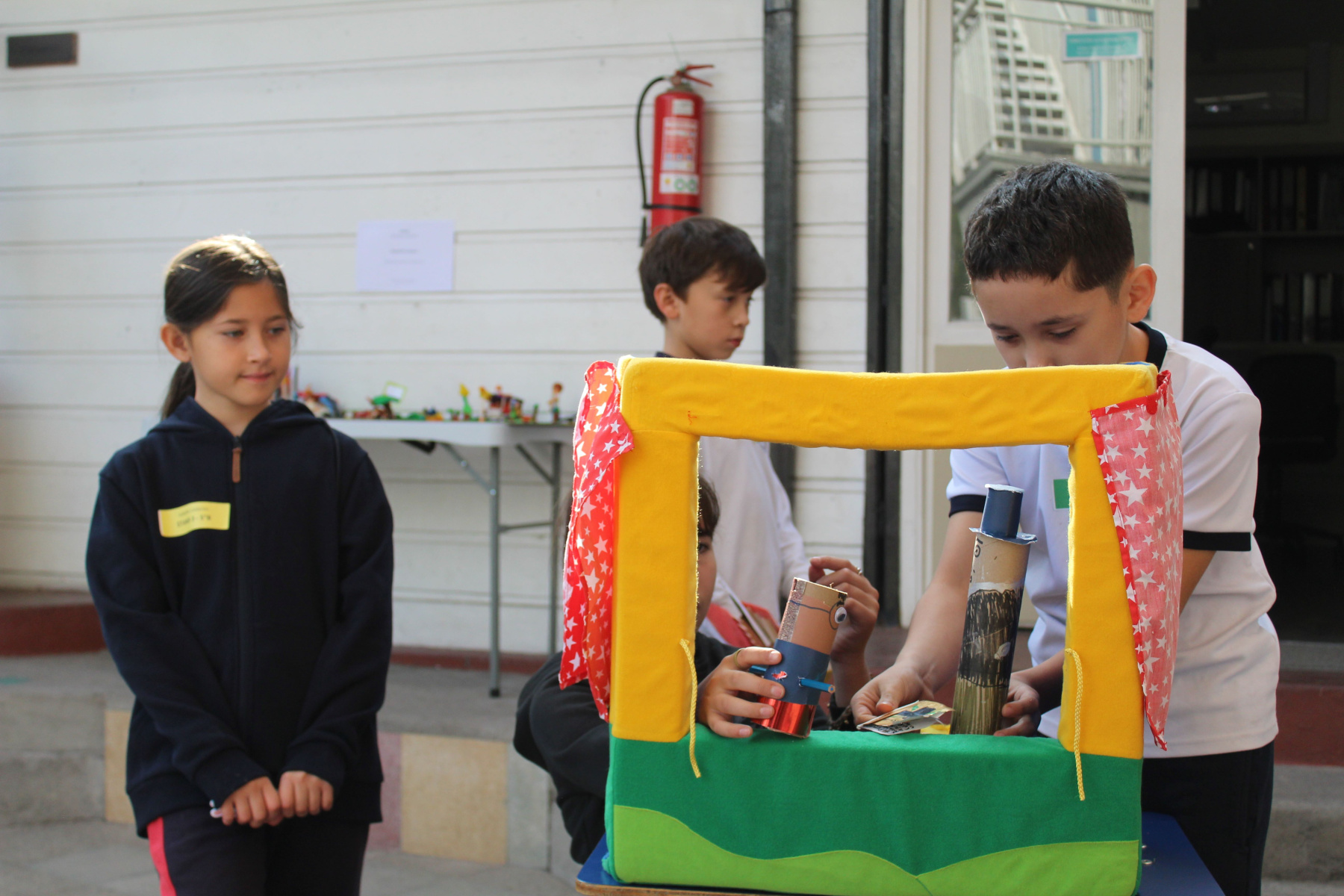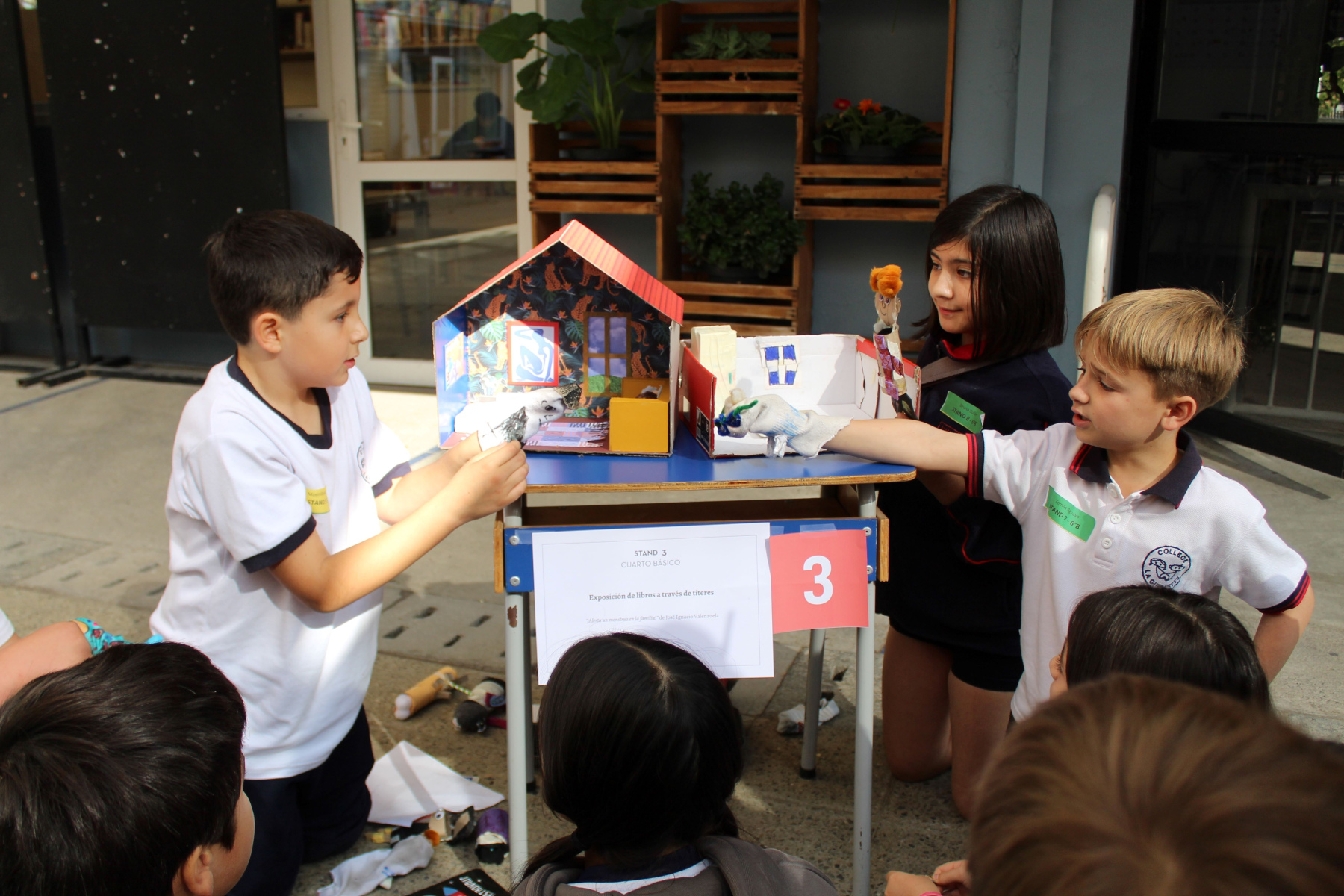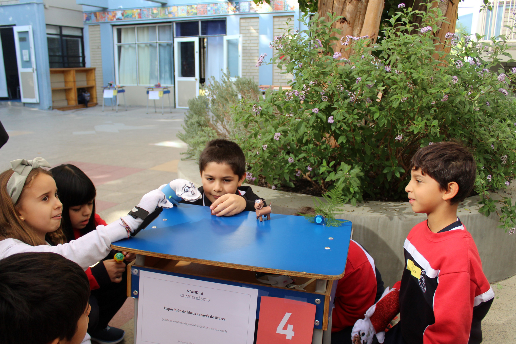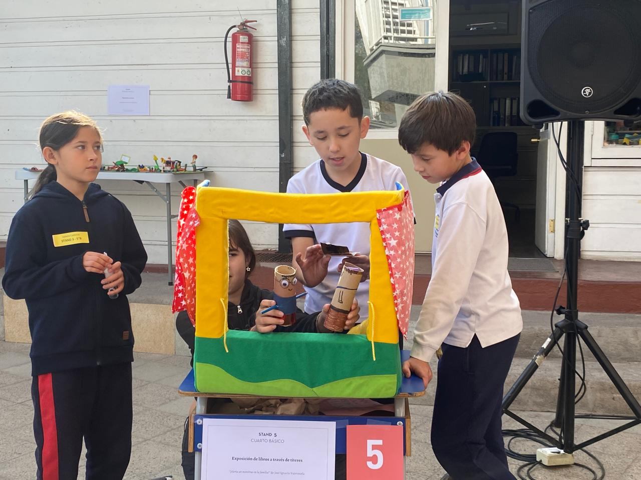 Luego, durante toda la jornada escolar los cursos desde 3º Básico en adelante, expusieron sobre el libro que leyeron en marzo o abril correspondiente al Plan Lector. Pudimos presenciar teatrillos kamishibai, juegos interactivos, representaciones, entre otros, en los patios de Básica y Media.